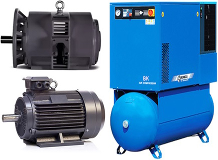 В нашем ассортименте представлены двигатели стандарта ГОСТ и EAC/DIN с базовым SF1 или увеличенным сервис-фактором SF1.15, SF1.2, специально выпущенные для компрессоров, трехфазные асинхронные IP55 (пыле-влагозащищенные), IP23 (для чистых помещений) и синхронные на постоянных магнитах для компрессоров с частотным регулированием.
