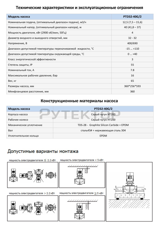 Циркуляционный насос In-Line PURITY PTD32-40G/2 (N) предназначен для перекачивания чистых невзрывоопасных жидкостей, без механических и волокнистых включений, не агрессивных к конструкционным материалам насоса, по своим физическим и химическим свойствам близким к воде.