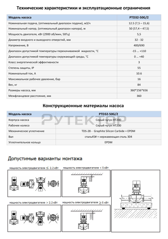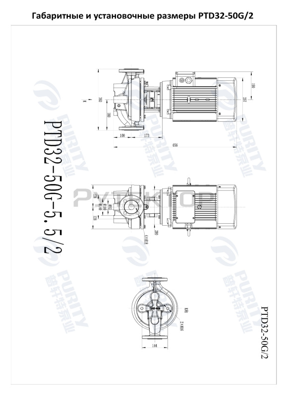 Циркуляционный насос In-Line PURITY PTD32-50G/2 (N) предназначен для перекачивания чистых невзрывоопасных жидкостей, без механических и волокнистых включений, не агрессивных к конструкционным материалам насоса, по своим физическим и химическим свойствам близким к воде.