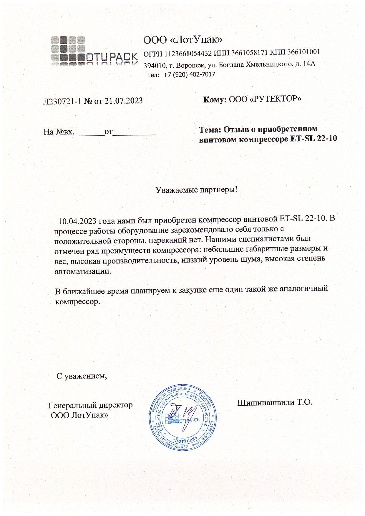 Поставка винтовых компрессоров ET SL 22-10 и ET SL 45-10 VS PM. Оборудование успешно введено в эксплуатацию и обеспечивает стабильную работу предприятия.