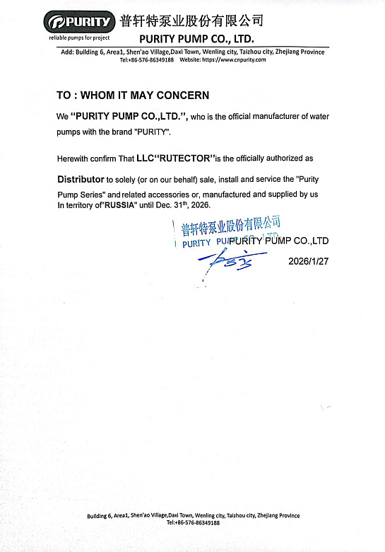 Сертификат официального дистрибьютора PURITY